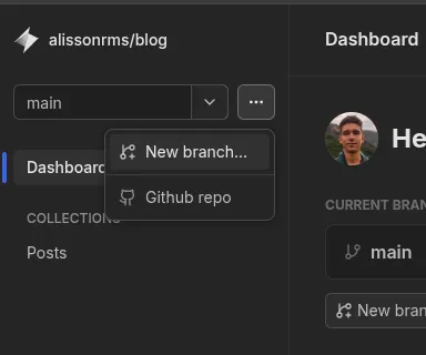 Se eu quiser testar alguma coisa antes de ir para o site em produção, posso somente mudar para alguma branch separada no próprio painel do keystatic e abrir um pull request, desse modo a Vercel já cria um link para teste com meus updates e eu só preciso dar merge se tudo estiver ok.